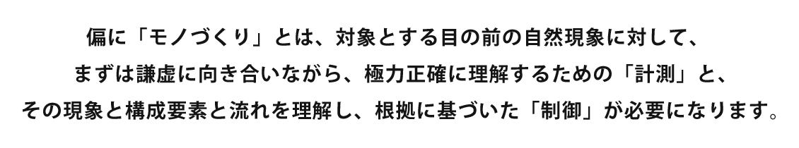 偏に「モノづくり」とは、対象とする目の前の自然現象に対して、 まずは謙虚に向き合いながら、